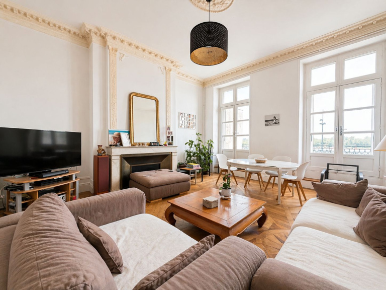 Venez découvrir au cœur du très recherché quartier des Chartrons, ce T3 d’une superficie de 97 m2 Loi Carrez, situé au premier étage d’un élégant immeuble en pierre, parfaitement entretenu, avec un accès direct aux quais.