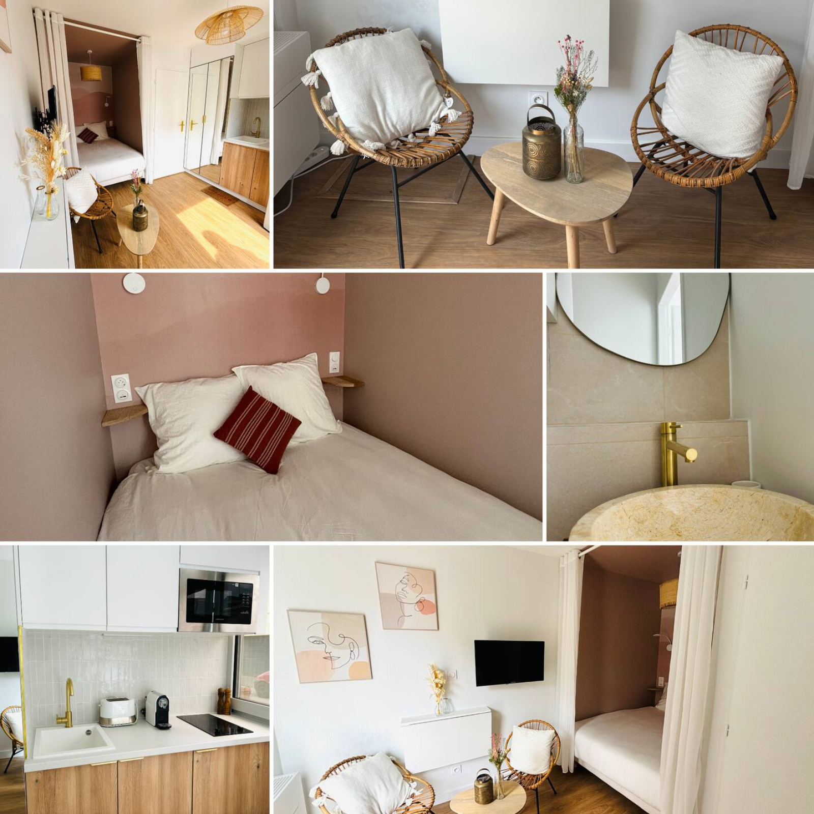 Il se compose d'un coin nuit, d'une kitchenette équipée, de rangements et d'une salle d'eau avec WC.