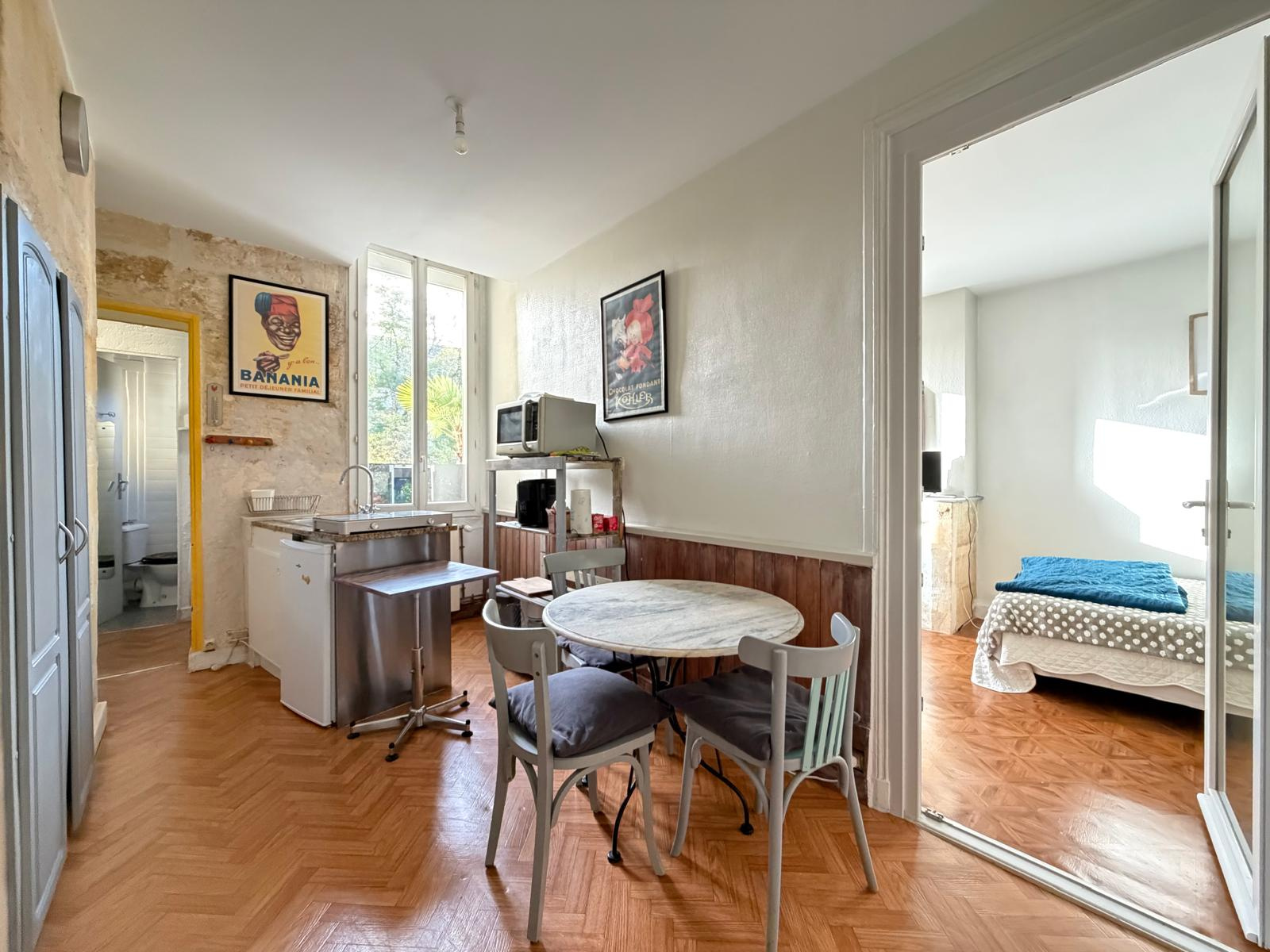 Un escalier en pierre dessert, au 1er étage, un T1 bis et un T2, ainsi qu’un spacieux studio aménagé sous les combles.